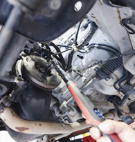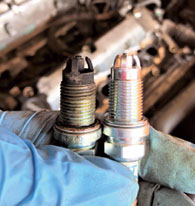 エンジンの始動不良や排気ガス悪化防止のため、点火プラグの状態等を点検します。