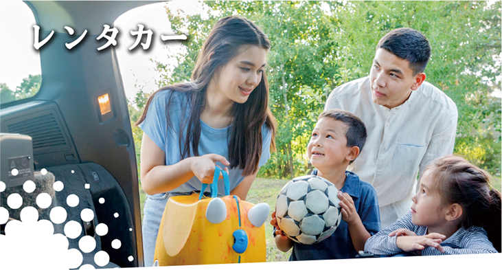 旅行をするときや、気分を変えてドライブしたいときにおすすめの「レンタカー」!引っ越し用や帰省中のお買い物にもご利用いただけます!軽自動車からワゴン車まで揃っており、人数や用途に合わせて自由に選べます。