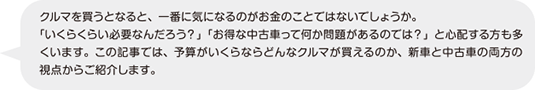 「いくらくらいで、どんなクルマが買えるのか」が分からないと、クルマ購入の計画を立てるのは難しいでしょう。