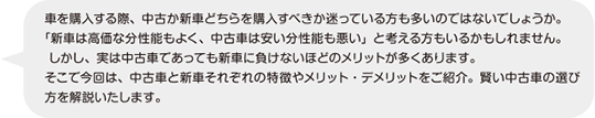 そこで、新車についてのメリットもご紹介いたします。