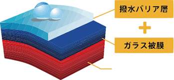 強固なガラス被膜に、超撥水パワーを生み出す、撥水バリアを組み込んだハイブッド構造。